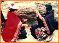 mother weaving and can observe the handling of the threads and